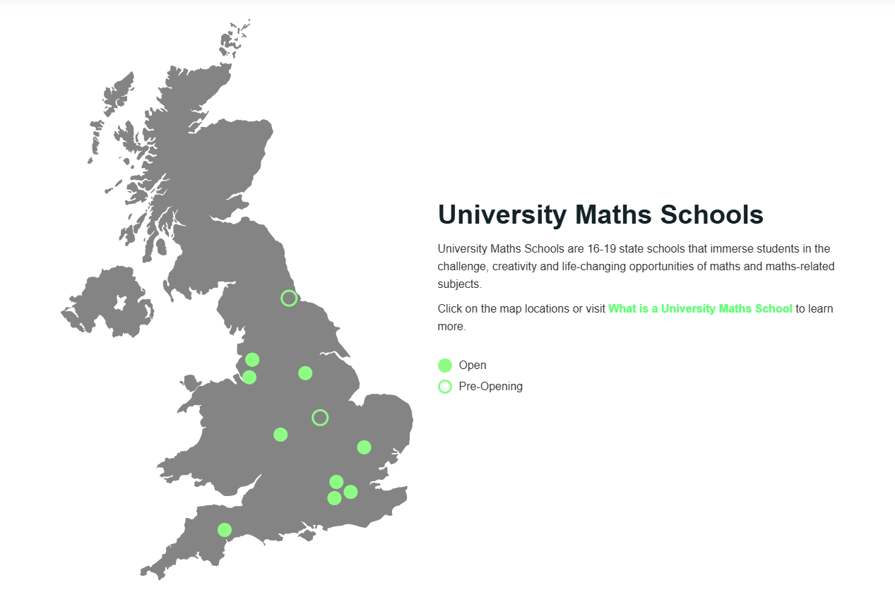 Run by some of the UK’s most prestigious universities, maths schools are specialist schools for 16- to 19-year-old students with a strong interest in the mathematical sciences. The schools help to prepare students for success in high-prestige STEM degree courses at top universities, and then to pursue careers in science, technology, engineering and mathematics.